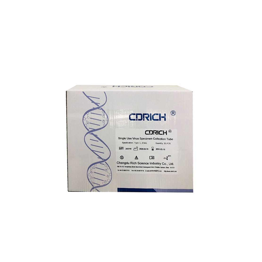 Nombre: COLECTOR DE 3.5 ml. CON ACTIVADOR PARA MUESTRAS CON VIRUS. CAJA x 20 UNID. Marca: CDRICH Código de producto: CDVCT-1